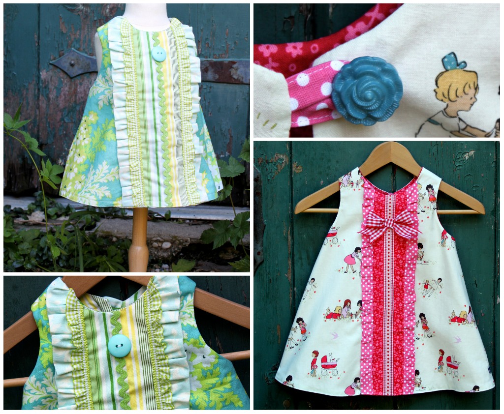 The dress is designed to have a lot of swing to it, so it's really a fun piece for little girls to wear. The final picture, with the ruffle front is a variation, is a look that I will eventually be demonstrating on the blog so you will be able to easily add that to your Shortcake Dress!